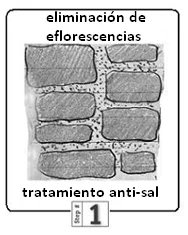 Cuando el agua alcanza la superficie de la mampostería y se evapora, las sales cristalizan
